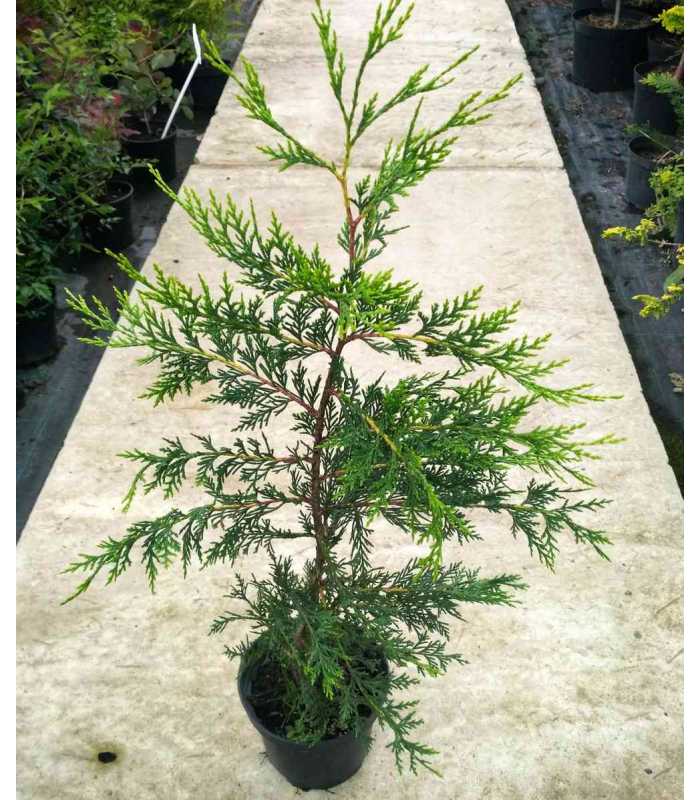 Купрессоципарис Лейланда Кастлевеллан Этот сорт выведен в 1962 году. Новинка питомника является межродовым гибридом кипариса и кипарисовика. Его по праву причисляют к наиболее популярным разновидностям. Выращивается культура преимущественно в естественном виде. Также из неё формируют различные композиции. На сегодняшний день это один из наиболее быстрорастущих хвойных. Ботаническое описание Купрессоципарис Лейланда Кастлевеллан – вечнозелёное кеглевидное дерево с узкоколоновидной формой кроны. С возрастом она становится конусовидной и более рыхлой. Ветки у хвойника густые и тонкие. В высоту он достигает 15 – 20 м, а в ширину – 3 – 5,5 м. При качественной агротехнике встречаются экземпляры размером до 7 м. Многолетник представляет декоративную ценность благодаря цвету хвои. Его окрас варьирует от жёлто-зелёного в летний период до бронзово-жёлтого в весенний. Хвоя по структуре чешуевидная. Плоды – округлые шишки, размером до 1 см. Состоят они из 8 чешуек, под каждой из которых находится по 5 зёрен с крошечными выступами.  Применение Купрессоципарис Лейланда Кастлевеллан занимает важную торговую нишу для ландшафтных дизайнеров между западной туей и неморозостойким кипарисом. При этом хвойник растёт практически в 2 раза быстрее туи. В итоге при минимальных затратах и в короткий срок можно получить живую изгородь. Многолетник активно применяется в в садово-парковом озеленении Западной Европы. Это сорт, рекомендуемый для одиночных посадок и формирования боскетов. Растение обладает фитонцидными свойствами, благодаря чему хорошо очищает воздух. Оно оздоравливает сердечно-сосудистую и дыхательную систему, помогает бороться с астмой и аллергическими проявлениями. Агротехника Саженцы купрессоципариса Лейланд Кастлевеллан предпочитают солнечные участки. При этом они выносят и полутень. К составу почвы рассада нетребовательна. Тем не менее, замечено, что лучше всего она развивается на свежих, насыщенных питательными веществами и хорошо дренированных землях. Также желательно, чтобы они были щелочные или кислые. Если задача состоит в выращивании живой изгороди, то саженцы размещают с интервалом в 60 – 70 см один от другого. Уход за выращенной в питомнике и перенесённой на участок рассадой нужен минимальный. Он включает умеренный полив и своевременную подкормку минеральными комплексами. Вредителями купрессоципарис Лейланд Кастлевеллан практически не поражается. К болезням хвойник тоже устойчив. В одиночных посадках стрижка кустарнику не требуется. Достаточно убирать сломанные и высохшие ветви. Стрижка в живой изгороди осуществляется в марте или первой половине апреля (до начала фазы активного роста). Ликвидацию повреждений купрессоципариса Лейланд Кастлевеллан выполняют каждый год в конце лета. В регионах с холодными и малоснежными зимами молодые саженцы следует укрывать на зиму. Для этого используют еловый лапник, торф, перегной и нетканые материалы (например, лутрасил или спанбонд). Преимущества купрессоципариса Лейланда Кастлевеллан Основными достоинствами, за которые ценится представленный на фото сорт, являются: хорошая морозостойкость; активный рост; устойчивость ко многим заболеваниям и вредителям; отменные декоративные качества;  ветроустойчивость; засухоустойчивость; приспособленность к загрязнениям о